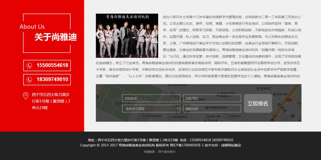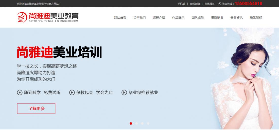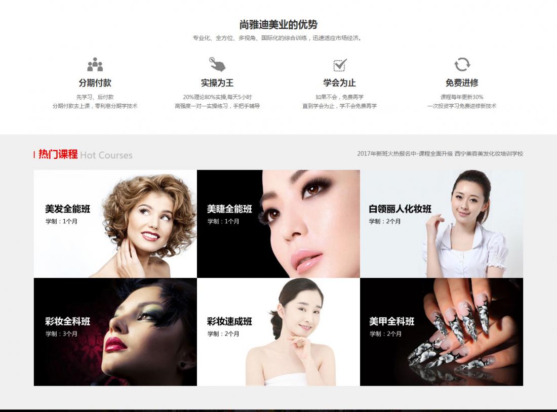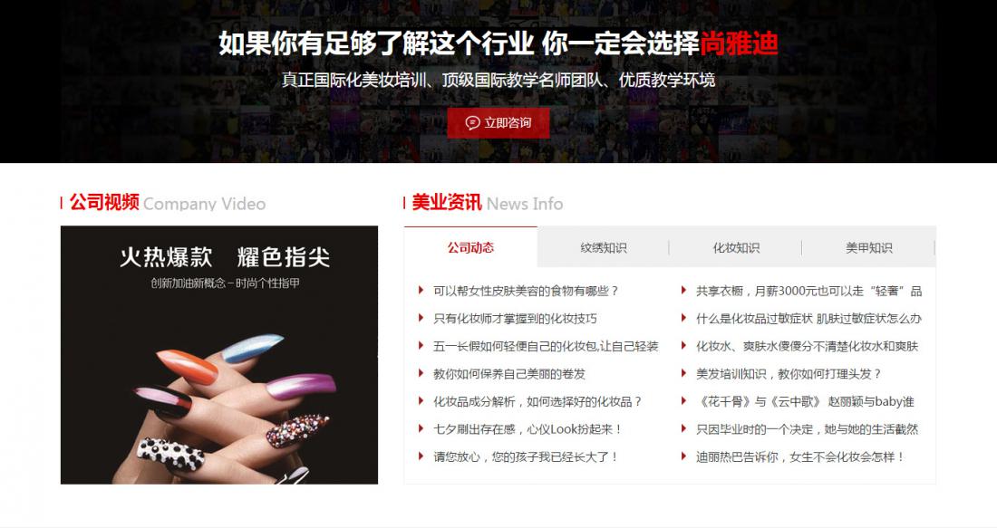 青海西寧尚雅迪美業(yè)培訓(xùn)公司主要以化妝、美甲、紋繡、美睫、小紋身等進(jìn)行專業(yè)培訓(xùn),其官方網(wǎng)站經(jīng)我公司精心設(shè)計(jì)制作,于2017年8月9日正式上線使用。訪問網(wǎng)站